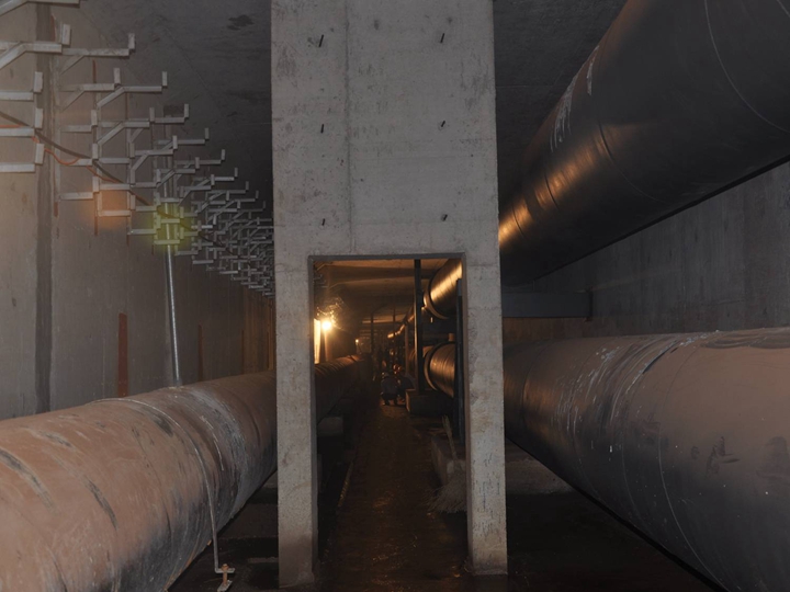 容納的管線較多,包括2DN1000熱力管道、 1DN1000給水管道、1DN900給水管道、弱電管道、220KV110KV、10KV電力管道及預(yù)留的中水管道、空調(diào)管、直飲水管道等。